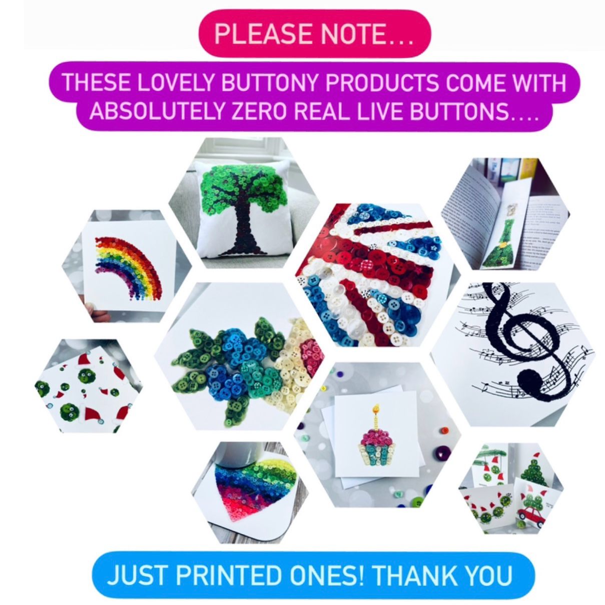 Each card comes with a white envelope and is encased in a biodegradable protective cello bag. Please note, this card is a scanned and printed image of the original button picture....Absolutely no real live buttons are included when you order! Thank you.
